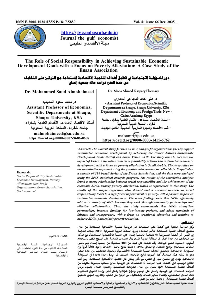 The Role of Social Responsibility in Achieving Sustainable Economic Development Goals with a Focus on Poverty Alleviation: A Case Study of the Ensan Association
