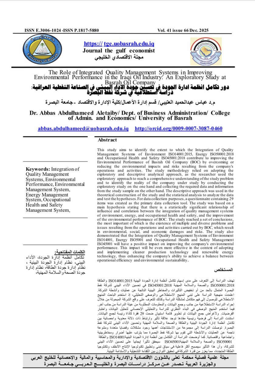 The Role of Integrated Quality Management Systems in Improving Environmental Performance in the Iraqi Oil Industry: An Exploratory Study at Basrah Oil Company