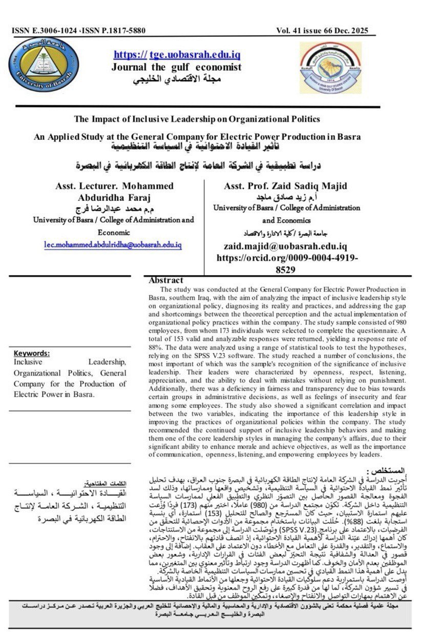 The Impact of Inclusive Leadership on Organizational Politics An Applied Study at the General Company for Electric Power Production in Basra